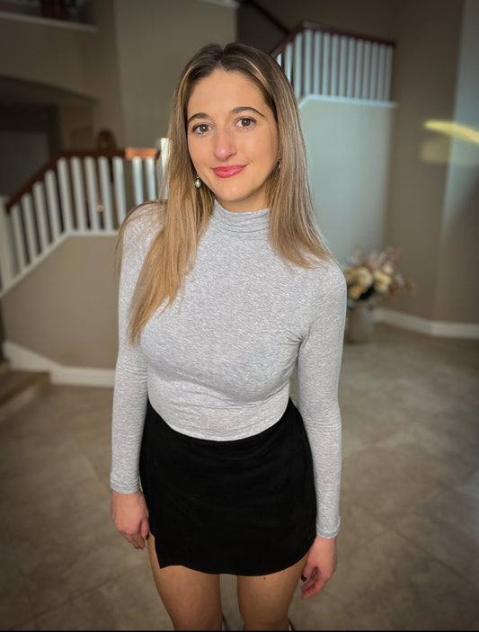 NEW ARRIVAL -Classic Chic - Light grey turtleneck long sleeve top -T2364