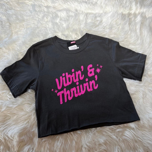 Vibin' & Thrivin' Charcoal gray Graphic Crop Tee - T2133