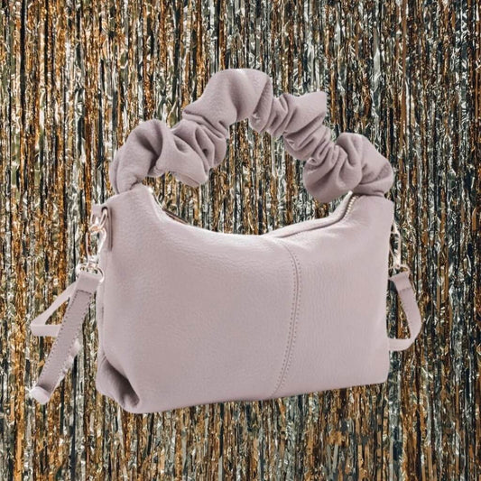 Chicest Moments - 90's Style Taupe Scrunched Handle Hand Bag With Extended Strap