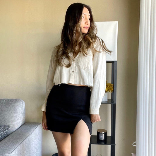Own the Night Black Split Hem Bodycon Mini Skirt - B2245