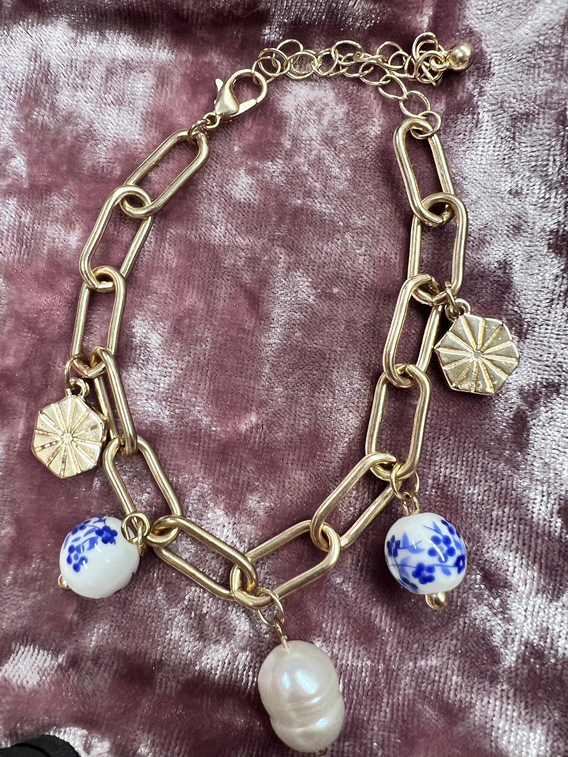 Blue Flower Beaded Chain Bracelet
