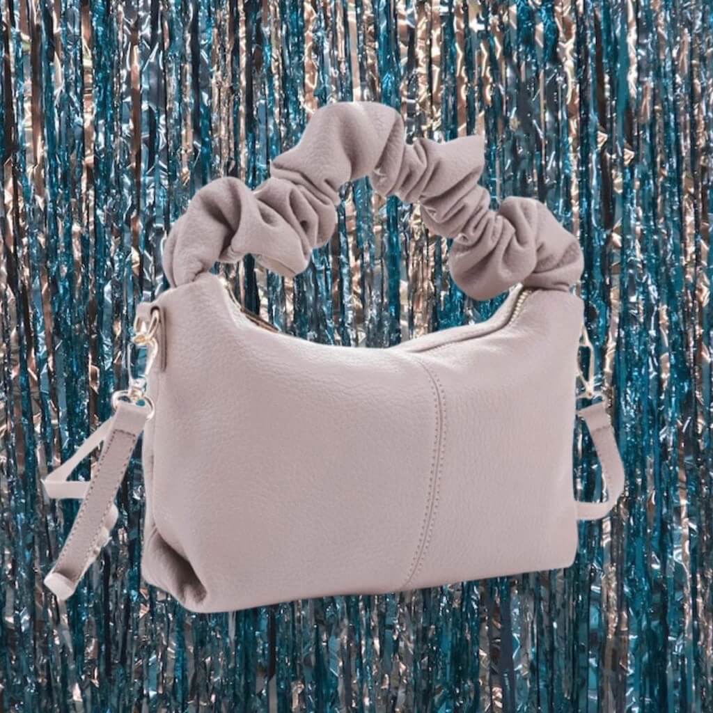 Chicest Moments - 90's Style Taupe Scrunched Handle Hand Bag With Extended Strap