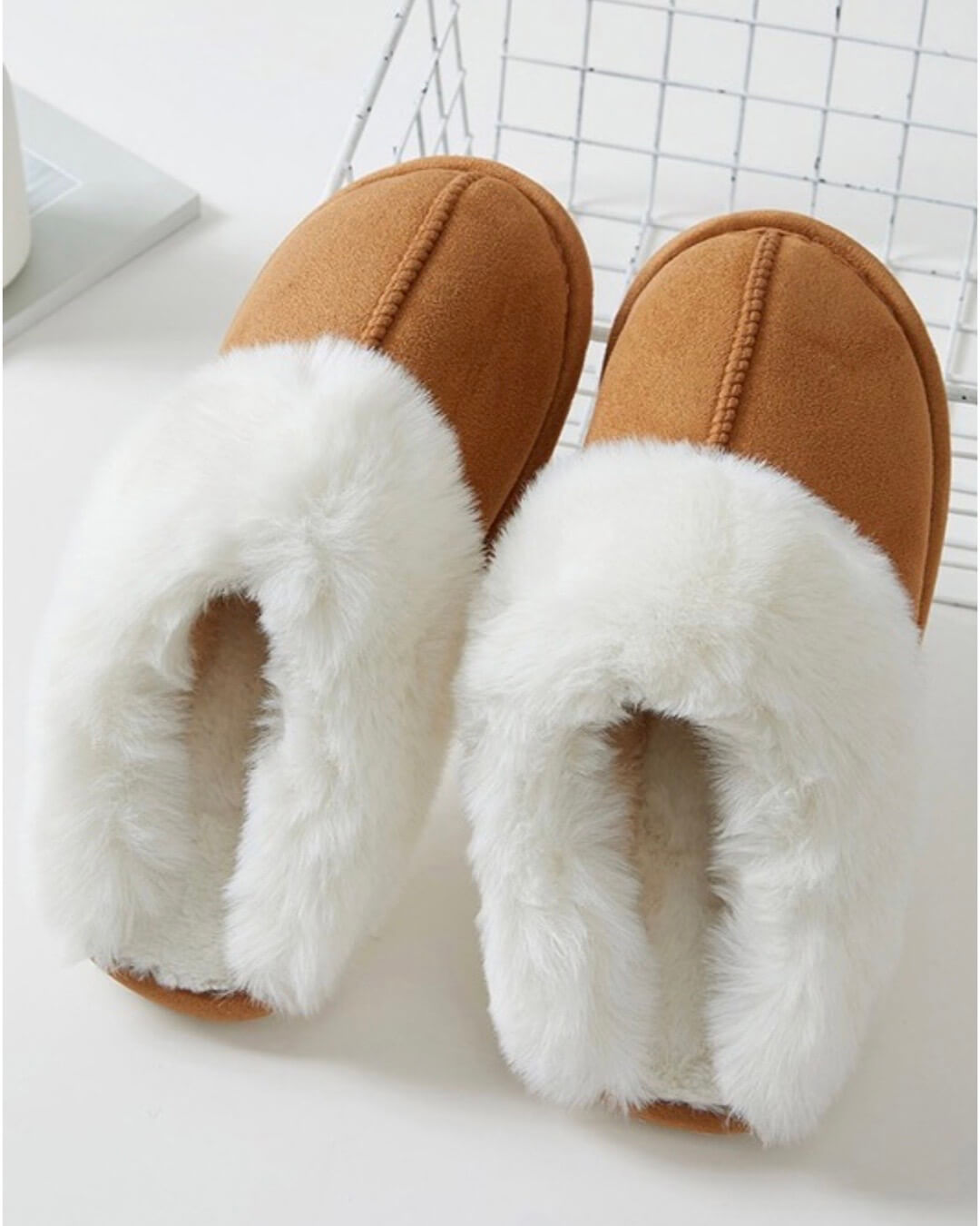 Cozy Energy - Camel Sherpa Slippers with a rubber sole