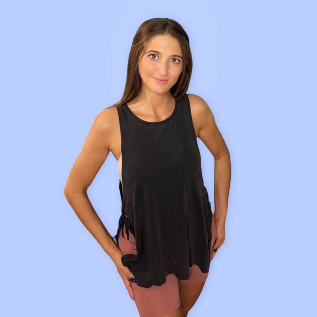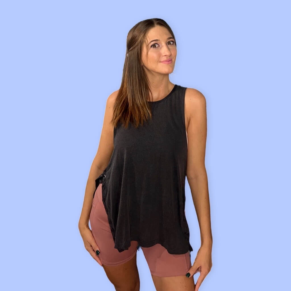 Anything but basic, Merely Mystic's Weekend Impressions gray mineral wash tank is full of details and comfort allowing you to enjoy your busy days with ease. Its dropped armholes and oversized fit provide a casual chic appearance free of restrictions-making it the perfect top to wear while running errands, at the gym, or lounging. The high low side slits create a beautiful flattering silhouette showcasing your curves. Each side also comes together with drawstring closure for a boho finish.