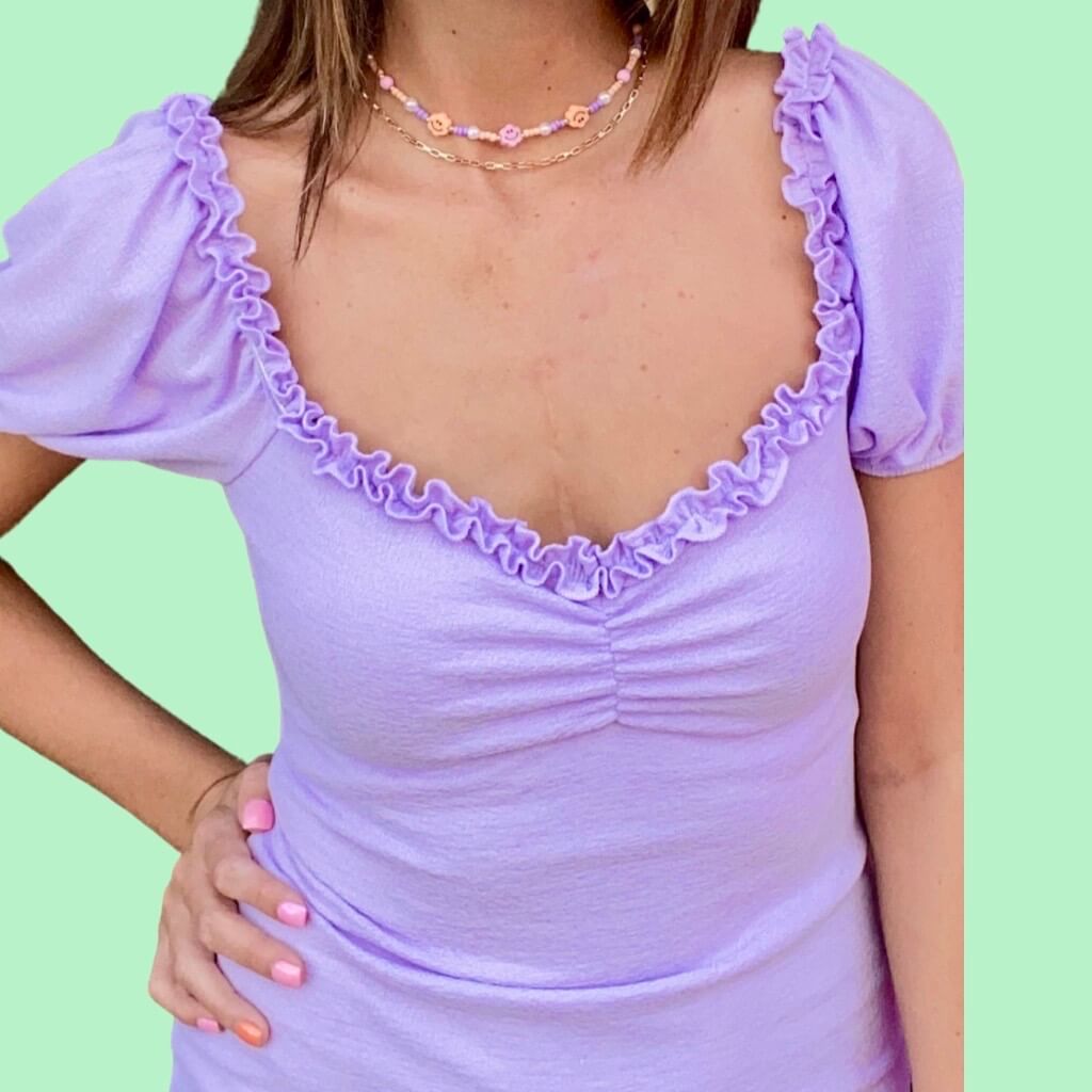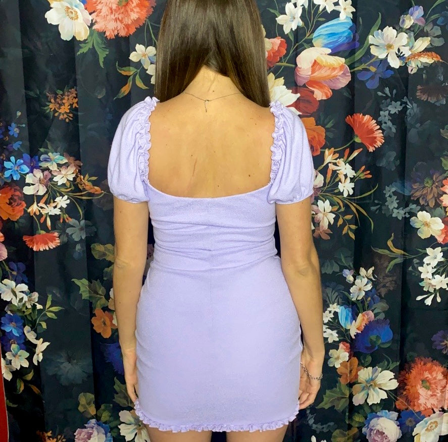 Lilac Graces Textured Ruffle Trim Puff Sleeve Bodycon Mini Dress - D2236