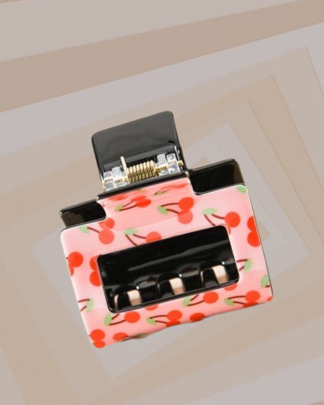 Upgrade your soft girl aesthetic with our Sweet Cherries 90's style claw! This 2-inch pink hair claw features adorable cherry aesthetic, adding a touch of cuteness to your look. Perfect to complete the soft girl style.