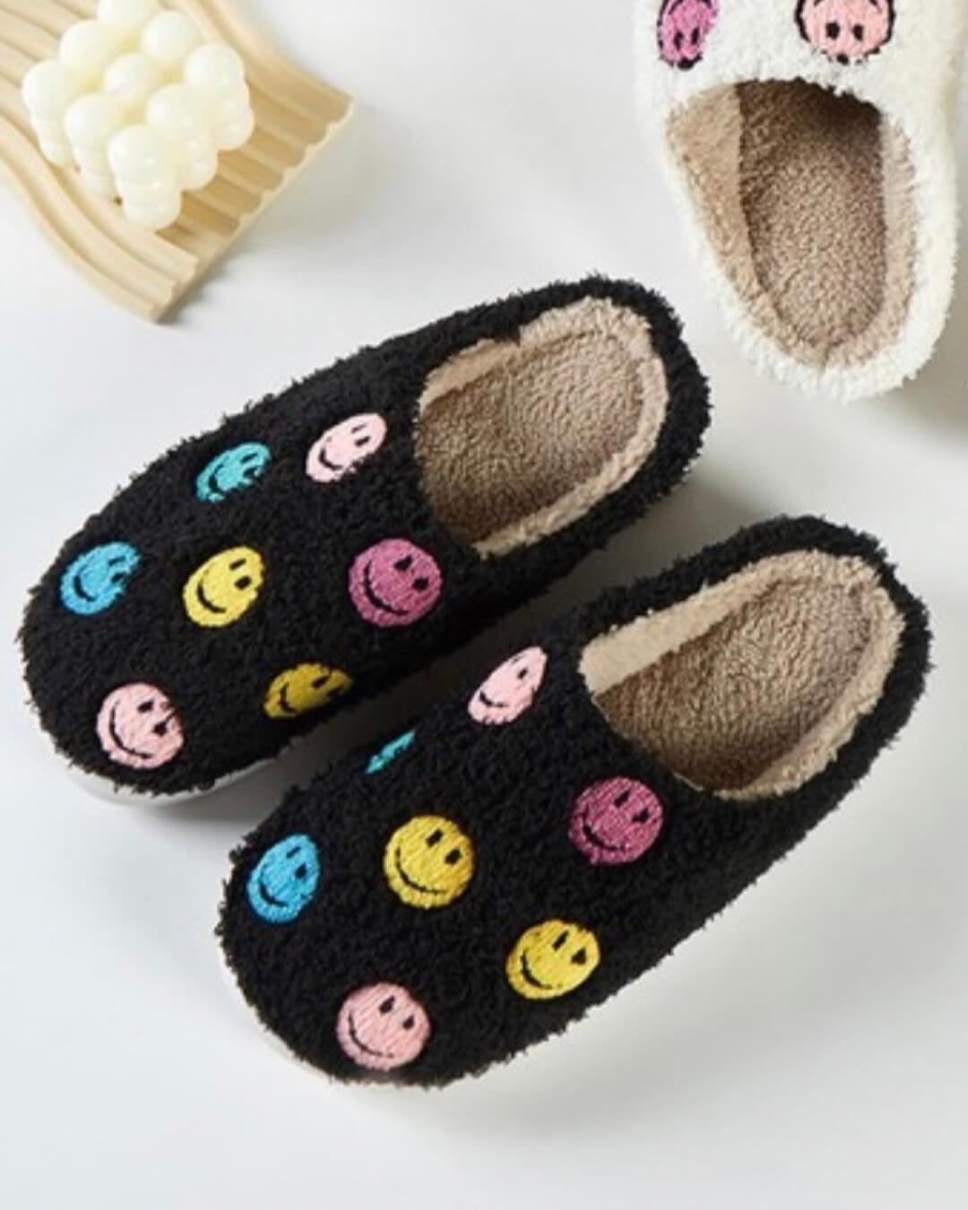 Preppy Times - Smiley Face Black Slippers with a rubber sole