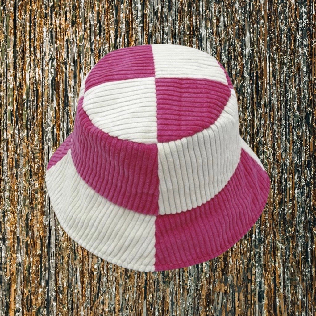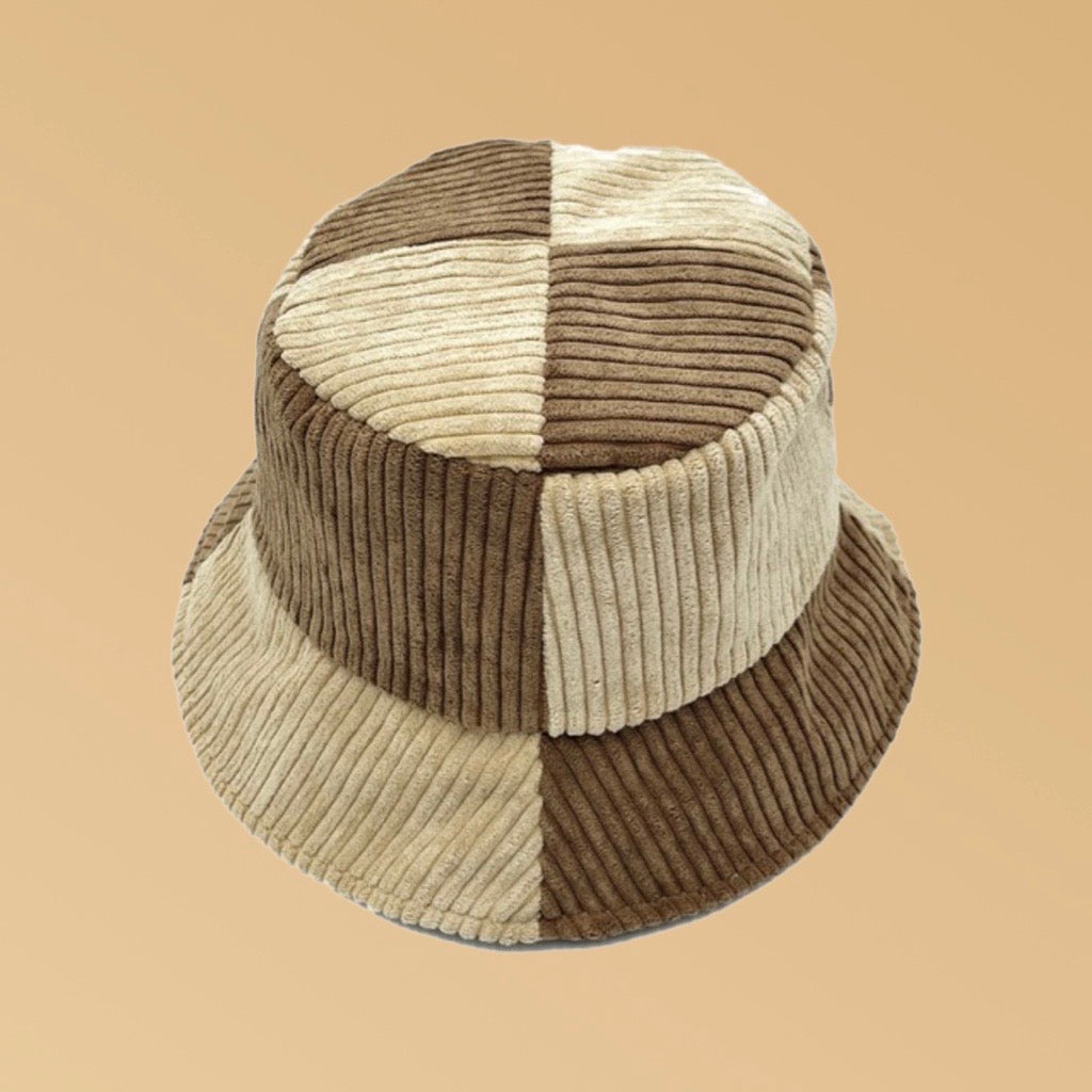 Trendsetter - Corduroy Patch Bucket hat in TAN & PINK